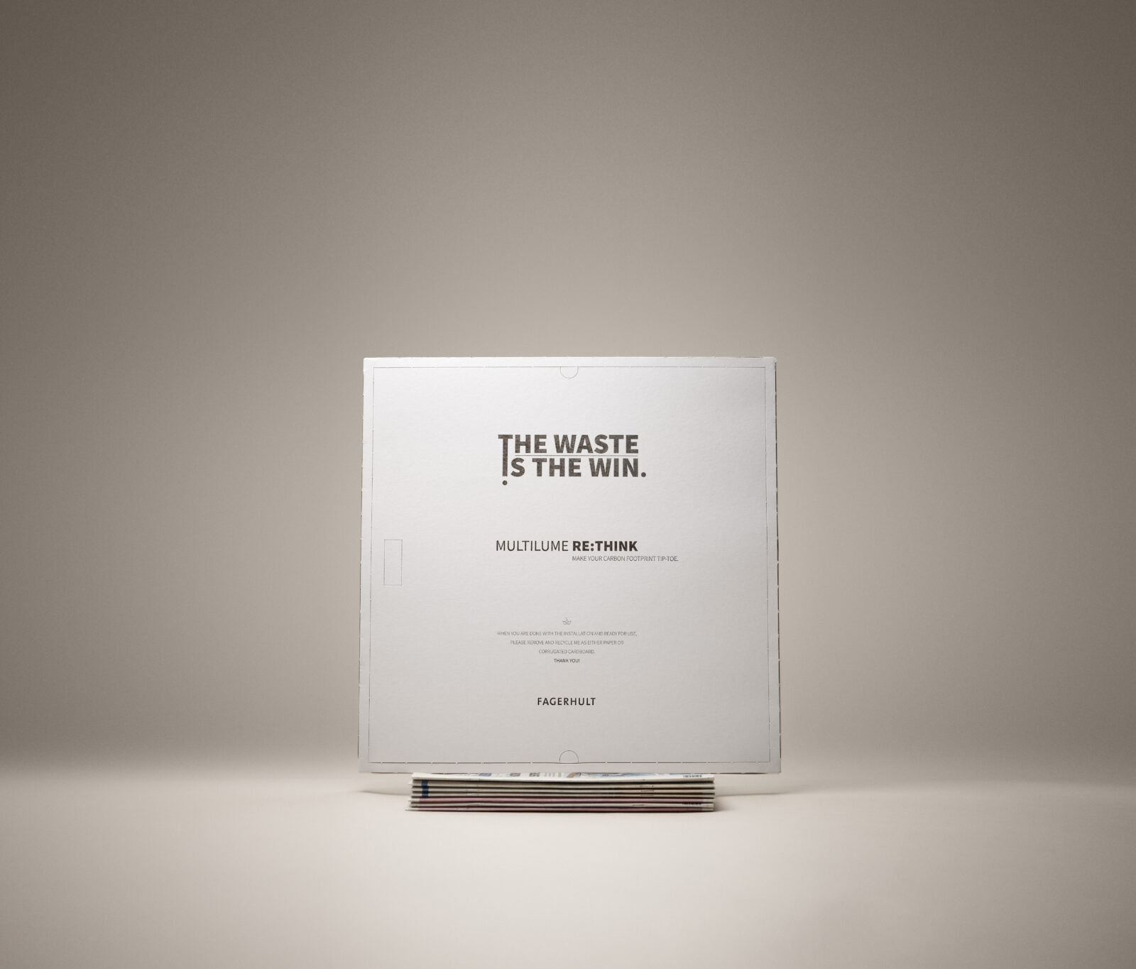 En självklar ersättare till de takarmaturer som förekommer i snart sagt varje större kontor. Multilume Re:Think bidrar till att givna parametrar ställs på ända och pekar på behovet av en omstart. Fagerhult initierade armaturen för ett mer resurssnålt och klimatvänligt utbud, med utgångspunkt från företagets tio mest sålda produkter. Tanken är att förändra både tillverkning och transporter i grunden.