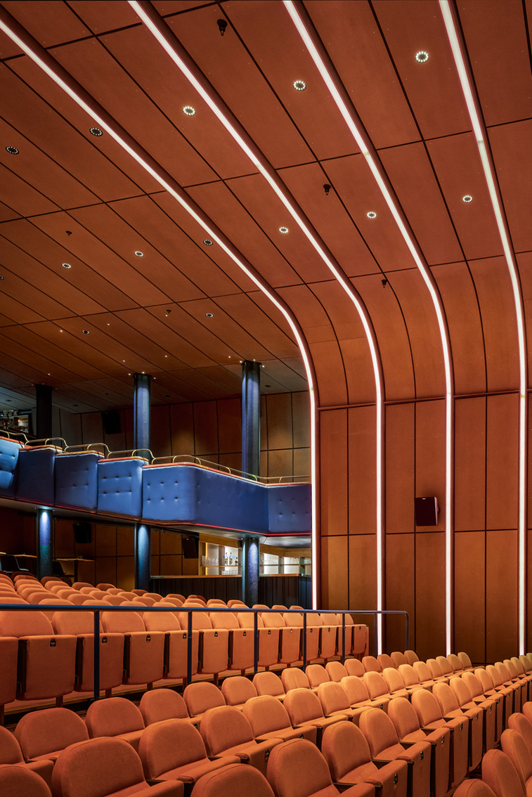 Maximteatern på Karlaplan i Stockholm har, efter hot om nedläggning, fått nytt liv som kulturhus med bio, teater, musik, barer och restaurang. Ett för uppdraget sammansatt arkitektteam har förädlat den befintliga lokalen. Ambitionen är att öppna huset för en bredare publik och sänka tröskeln till olika kulturupplevelser. En central utmaning var att inrymma både en bostadsrättsförening och en scen med varierande verksamhet i samma byggnad. Lösningen blev en ny inre volym i den befintliga teatern, där konstruktion och akustik samverkar för att minimera ljudöverföring utan att kompromissa med scenupplevelsen. Samtidigt har historiska lager tagits till vara genom återbruk av paneler och detaljer, som fått nya positioner inom huset och förstärker kontinuiteten över tid.