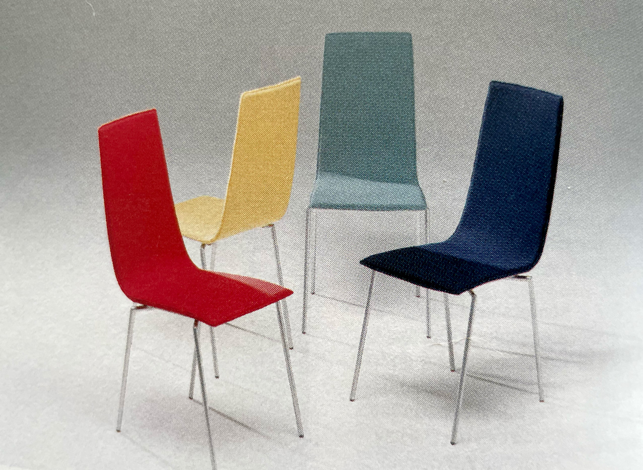 Stolen har styrkan att ingå i en familj bestående av stol och karmstol, hög och låg pall, samt kan erhållas både klädd och oklädd. Den strama tidlösa formen kommer att upplevas lika spänstig långt in i framtiden – som en god klassiker.