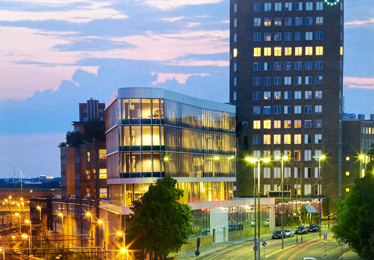 För en ambitiös upprustning och tillbyggnad av ett gymnasium som skapar ett kulturhus, tänkt att knytas samman med stadskärnan i en kvartersstruktur. De slipade betongelementen ger byggnaden en anslående grafisk skärpa med ett enkelt och robust material. De trekantiga ljusgårdarna skapar en variationsrik sekvens av inre rum, längs ett stråk med kopplingar till olika entrégårdar.