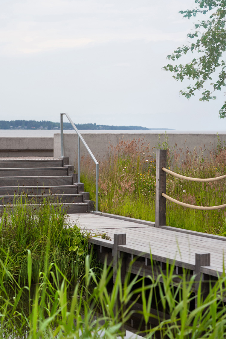 Konceptets visionära enkelhet är lika viktigt att lyfta fram som genomförandets goda hantverk. Det är ett storslaget grepp som krävt både flytt av småbåtshamn och tillståndsprövningar för att genomföras. I utbyte är potentialen i platsen bättre tillvaratagen. Även när parken är obefolkad fångar formspråket landskapets skala. Det ger parken närvaro och värdighet.