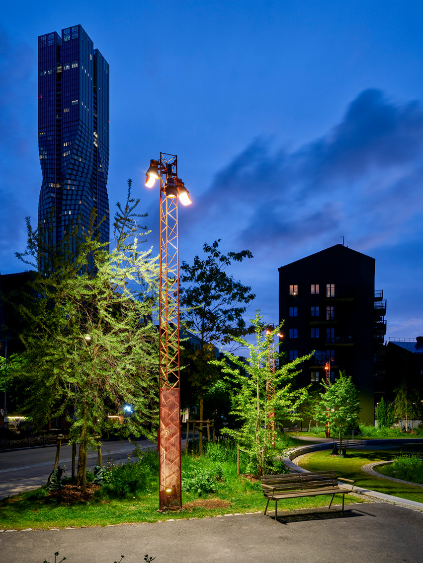 Helheten samspelar i skala och form med omgivande byggnadsvolymer från olika epoker. En finstämd och återhållen materialpalett, med granit i varierande format och texturer, ger robust elegans som kräver lite skötsel över tid. En pergola som så småningom kläs in av klätterväxter markerar parkens kant mot verksamheterna intill och länkar i färg och material till en industribyggnad i fonden. Den nominerade är förebild för en vacker urban park som skapar upplevelsevärden samtidigt som den löser utmaningar på platsen.