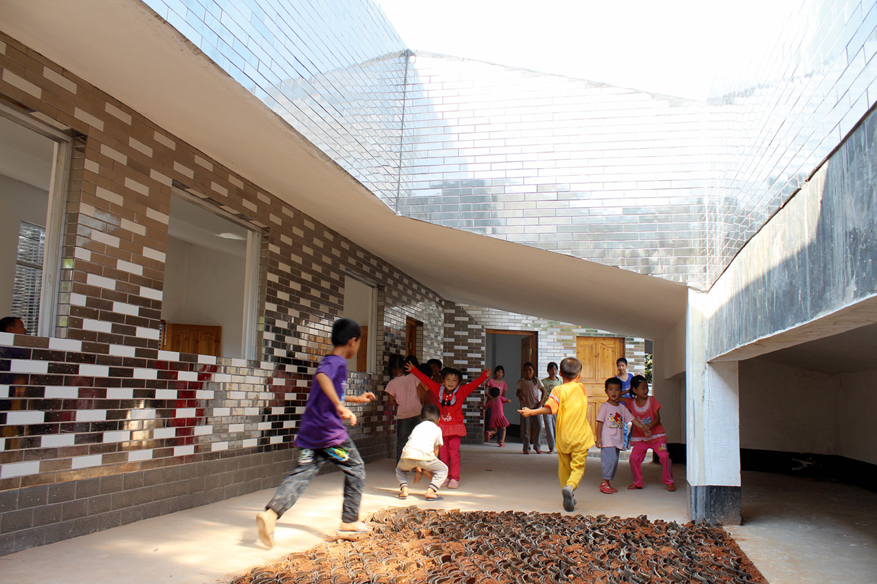 I Mulan Village skapade byggandet av höghastighetsjärnvägen ett stort snitt i landskapet och ett upplag av instabil jord bakom en befintlig grundskola. Skolan var avsedd att byggas ut och vårt uppdrag var att utforma ett pedagogiskt landskap som innebar skapandet av en ny skolbyggnad, en toalett och en lekplats. Vår strategi var att organisera platsen som en serie sekventiella öppna rum för lek och studier. Den lösa jorden omformades, och en toalett samt ett vassbäddsfiltreringssystem placerades för att stabilisera sluttningen, omsluta basketplanen och skapa små upptäcksträdgårdar.