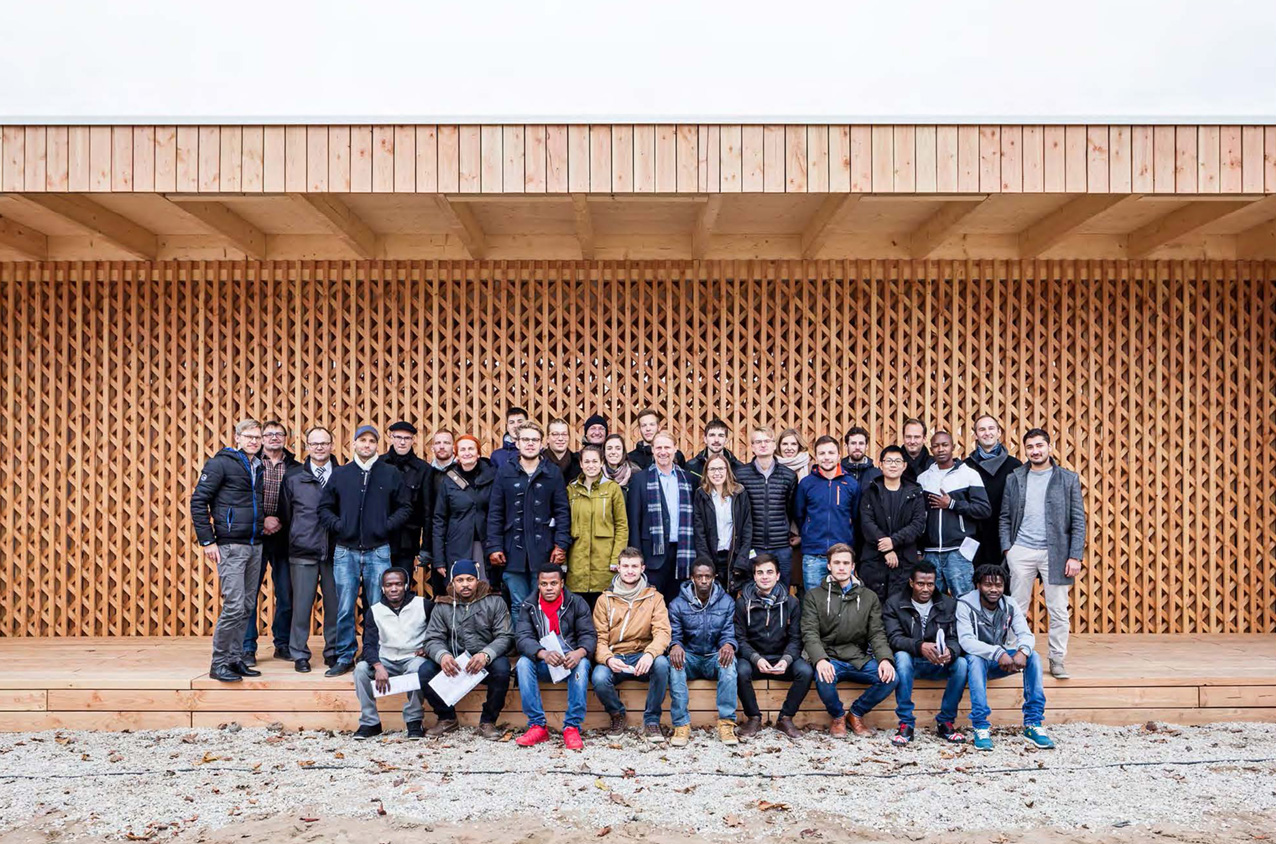 Staden Mannheim i sydvästra Tyskland har tagit emot ett stort antal flyktingar de senaste åren. De har tak över huvudet och lider ingen materiell nöd på flyktingboendet på den nedlagda militärbasen Spinelli, men saknar gemensamma lokaler för att umgås. Arkitektstudenterna tog därför initiativet till ett gemenskapshus där även byggprocessen skedde tillsammans med 25 av flyktingarna på Spinelli.