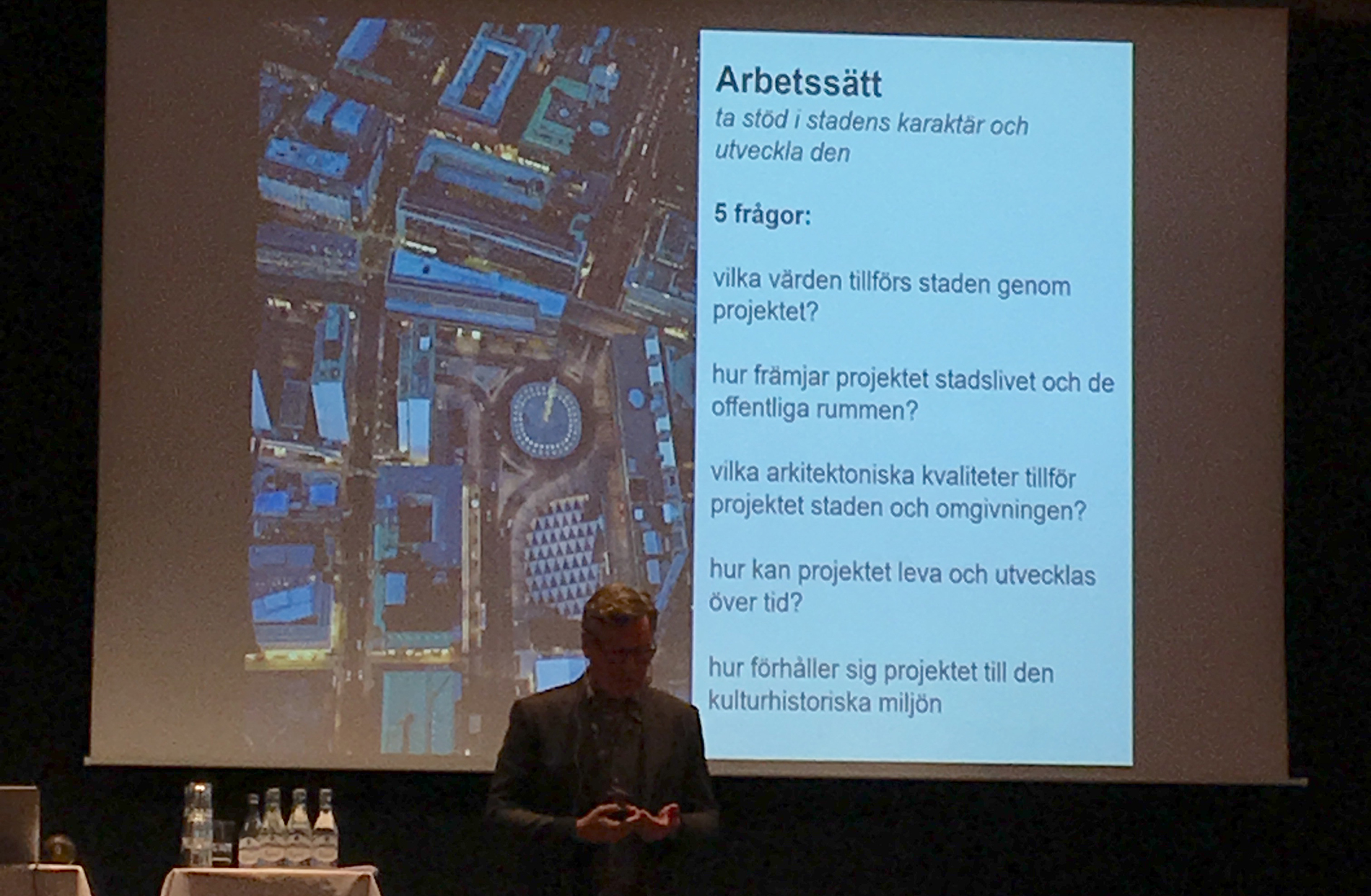 På Byggnadsföreningens seminarium föreläste också Anna Nyberg från Vasakronan, Linn-Marie Nord från Pembroke och Daniel Markström från Jernhusen. Tillsammans styr de över de största delarna av city som är under förändring: de äger husen runt Sergels torg – Sergelhuset, S-huset, H-huset och M-huset samt Hästskon 21, PK-huset, Mästerhuset och det stora området kring Centralstationen som man vill överdäcka. Det är utmanande och komplext. 73 % tycker att detta är Stockholms centrum men nio av tio säger att de inte har någon anledning att vara här. Stadsbyggnadskontoret beskriver hur man vill främja det mänskliga livet, stadslivet och de offentliga rummen med den arkitektur man tillför. Om vikten att ta hand om stadens siluett med sitt vatten och hur alla fastighetsägare måste svara på fem frågor om hur man svarar upp mot det med sin arkitektur.