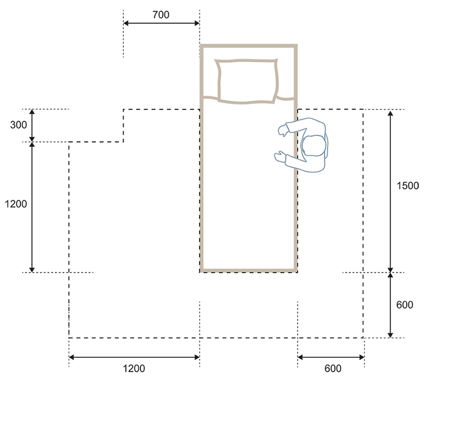 Ett annat exempel är mått vid säng för medhjälpare. Nyligen publicerade Boverket information om det på kunskapsbanken. Verket hänvisar till standarden för bostadsutformning SS 91 42 21 när det anger minimimåttet 600 mm på sängens bortre sida. Det finns dock två mått i standarden: det ena bredvid en enkelsäng 600 mm, det andra bredvid en parsäng 700 mm. Bara det är ologiskt och borde vara samma mått.