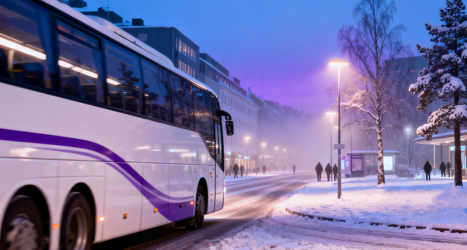 Vi möts utanför Sara Kulturhus och tar en gemensam promenad på cirka 100 meter till Skellefteås tillfälliga busstation.