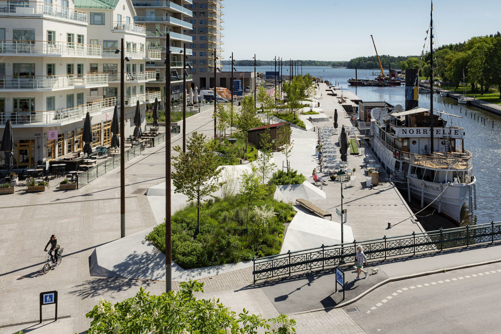 Hamnpromenaden i Norrtälje, Sydväst arkitektur och landskap.