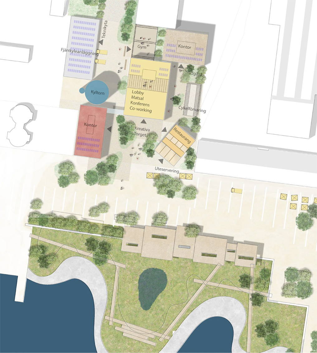 Med inlevelseförmåga och förståelse för platsen har förslagsställarna stakat ut en tydlig väg för att kunna möta utmaningar och behov i projektet efter tävlingen. De handlar om skalan, förankring på platsen och i staden, etappindelning och fördelningen av olika verksamhetsytor och besöksmål. Förslaget är lekfullt och följsamt genom att fånga upp karaktäristiska former och föreslå omtolkningar av befintliga byggnader. De föreslagna återvunna materialen blir både en påminnelse om tidigare liv på platsen och visar en hållbar väg framåt.
