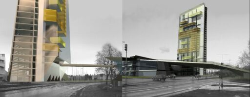 Event Estate och Sollentuna kommun genomförde mellan november 2001 och januari 2002 en inbjuden tävling om ett 100 meter högt hus bredvid Sollentunamässan.