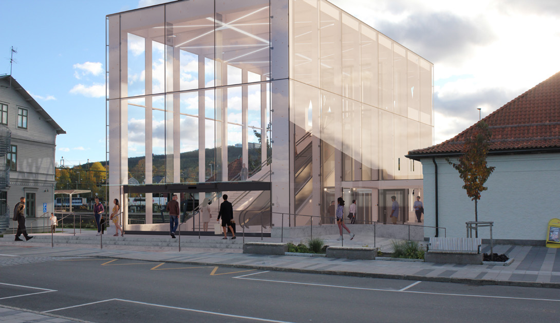 Måttfull visar efter vidareutvecklingen fortsatt en mycket stark formidé, som baseras på gångbrons och anslutningsbyggnadens uppglasade och räta linje. De slutna träpanelklädda nedgångarna, som förbinder bron med plattformarna utgör också kärnan i förslaget. Att anslutningsbyggnadens entré landar i en låg volym, där människor rör sig på stationsplatsen, är ett respektfullt grepp i relation till stationshuset. Tillsammans med en omsorgsfull markbehandling och ett vårdträd i en rundel med sittkant, gör entrén en inbjudande gest mot resecentrum.